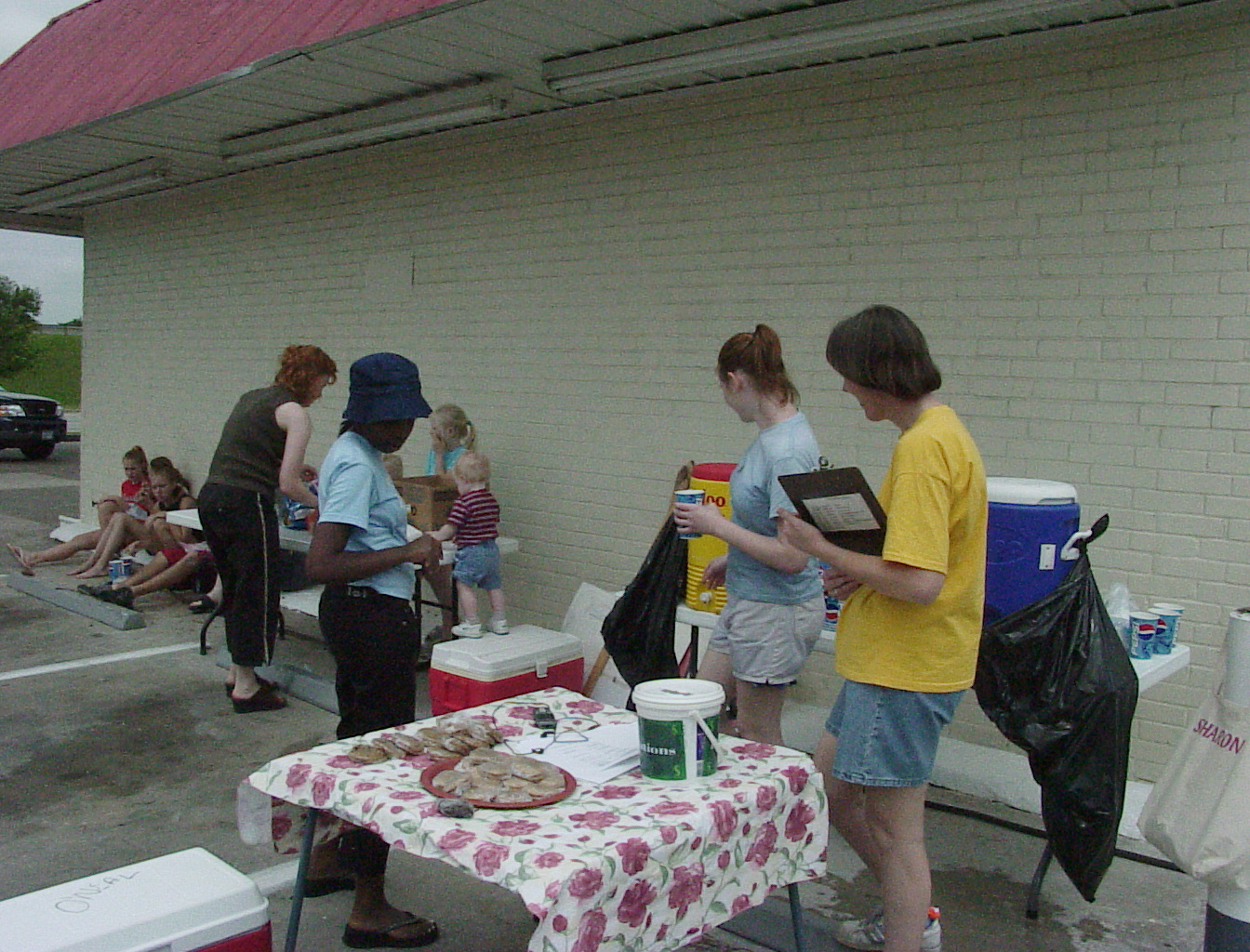 Amy gets Mercy a drink, but Ariella has to get her own. Sharon holds the container to make sure Ariella doesn't steal it while Tabitha watches to make sure nobody gets out of hand. Wouldn't they make great prison guards? |