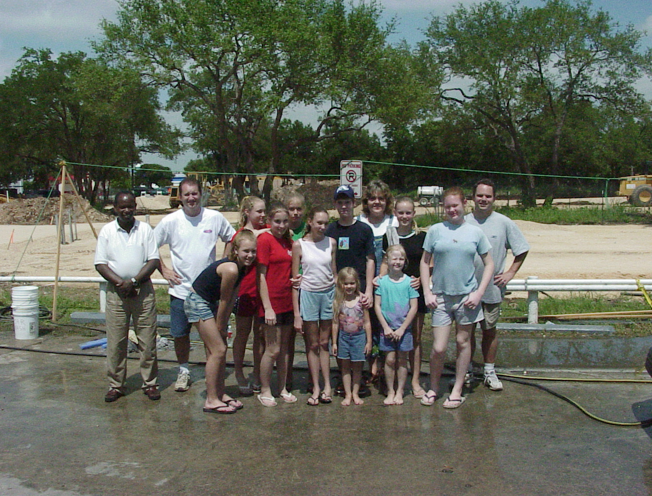 Tired soldiers in the suds army at the end of the day. Almost everyone here worked the whole day. Others had helped but already left. A notable exception is Wilson-- the guy on the left who isn't dressed appropriately for the occasion. He came by to get his truck washed, but decided to pitch in and help wash the last half dozen vehicles. "I just want to bless you!" Somehow, he came out spotless! Besides Wilson, we have :