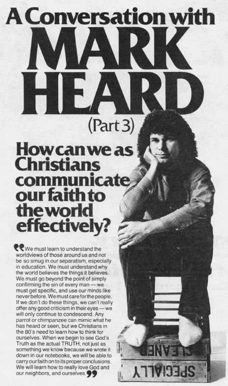 Mark was, as I noted, incredibly real and honest. His lyrics and music, like his life, were open, and expressed what he felt. He constantly strove to communicate. He sought after Reality and Truth with an amazing zeal. He loved people. He loved God. He wanted to help build the bridge between.