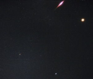 My dad, Rog Gerling, loved meteor showers. He got me and my brothers up to see the famous 1966 Leonids meteor storm. We witnessed it at about 3 a.m. in Kansas City—one of the great meteor-viewing events of the 20th century. We saw a constant stream of meteors that night, including meteors coming straight at us, and numerous meteors simultaneously. Since then I've taken photos when there were big showers or storms, especially Leonids showers. I've included photos of one of these meteors, taken on November 19th. 2002, during that Leonids meteor storm, 36 years after the 1966 storm.