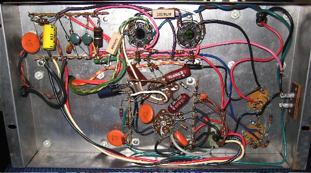 the left end of the amp; I added the phone plug you see above the output transformer to handle